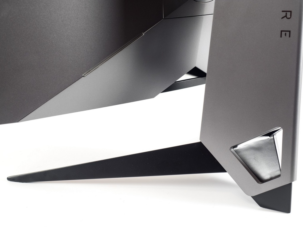 Покраска элементов равномерная, обработка краёв деталей не вызывает нареканий. Классический игровой логотип в виде дракона выполнен в чёрном исполнении, как и логотип самого бренда. По качеству исполнения монитор не отличается от моделей с ценой в 30-40 тысяч рублей.