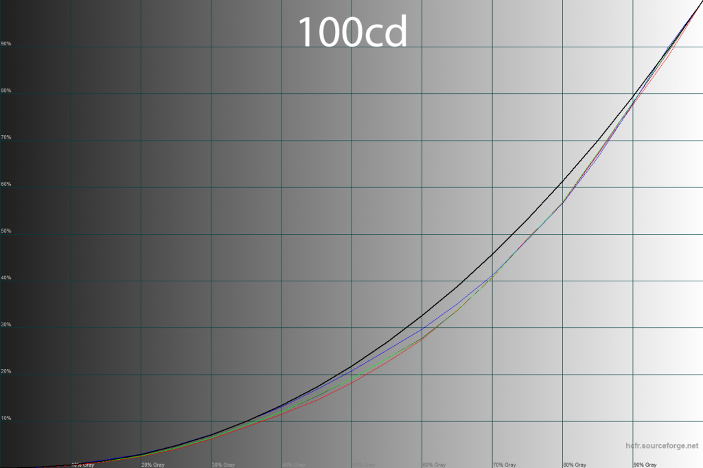 Ручные правки позволили снизить яркость до нужного уровня и установить точку белого близкую к 6500K с минимальными отклонениями. От изменения настроек контраста никаких улучшений не последовало, а поэтому мы оставили стандартное значение.
