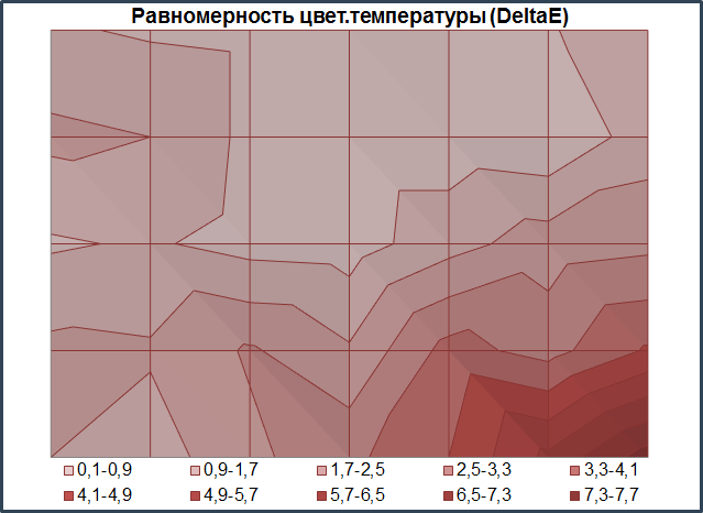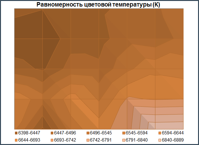Теперь перейдём к рассмотрению равномерности цветовой температуры на всей площади экрана.