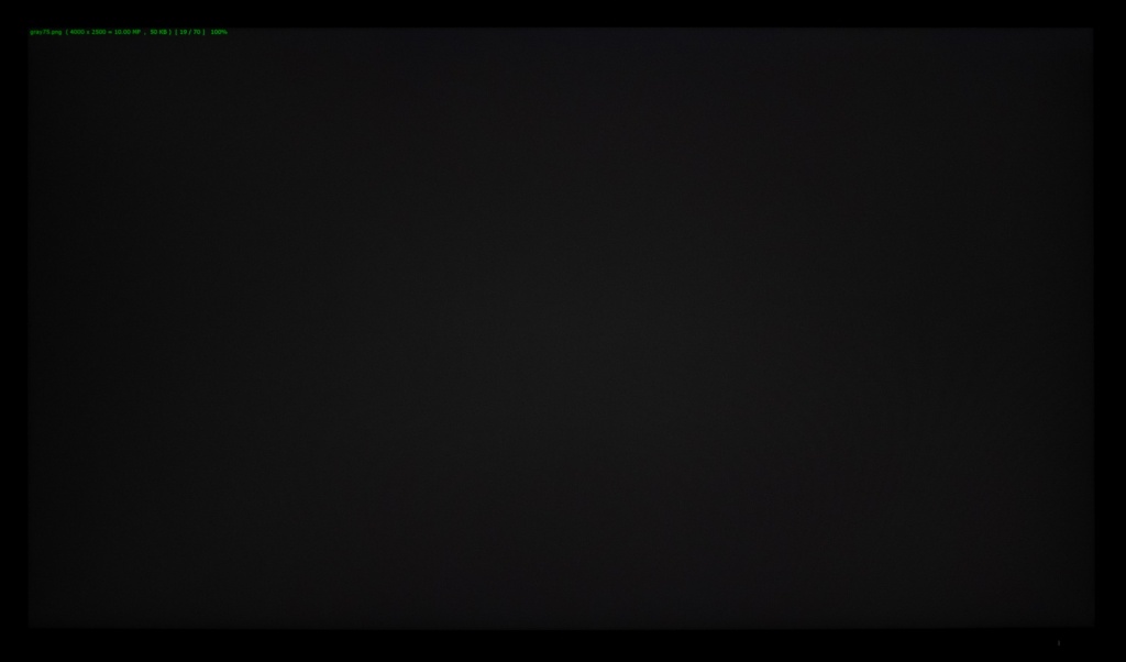 Очевидно, можно говорить о том, что равномерность подсветки чёрного находится на уровне выше среднего: присутствуют лишь слабые точечные засветки в некоторых частях экрана. Если вам попадётся что-то подобное, то можете даже не думать о поисках экземпляра получше!