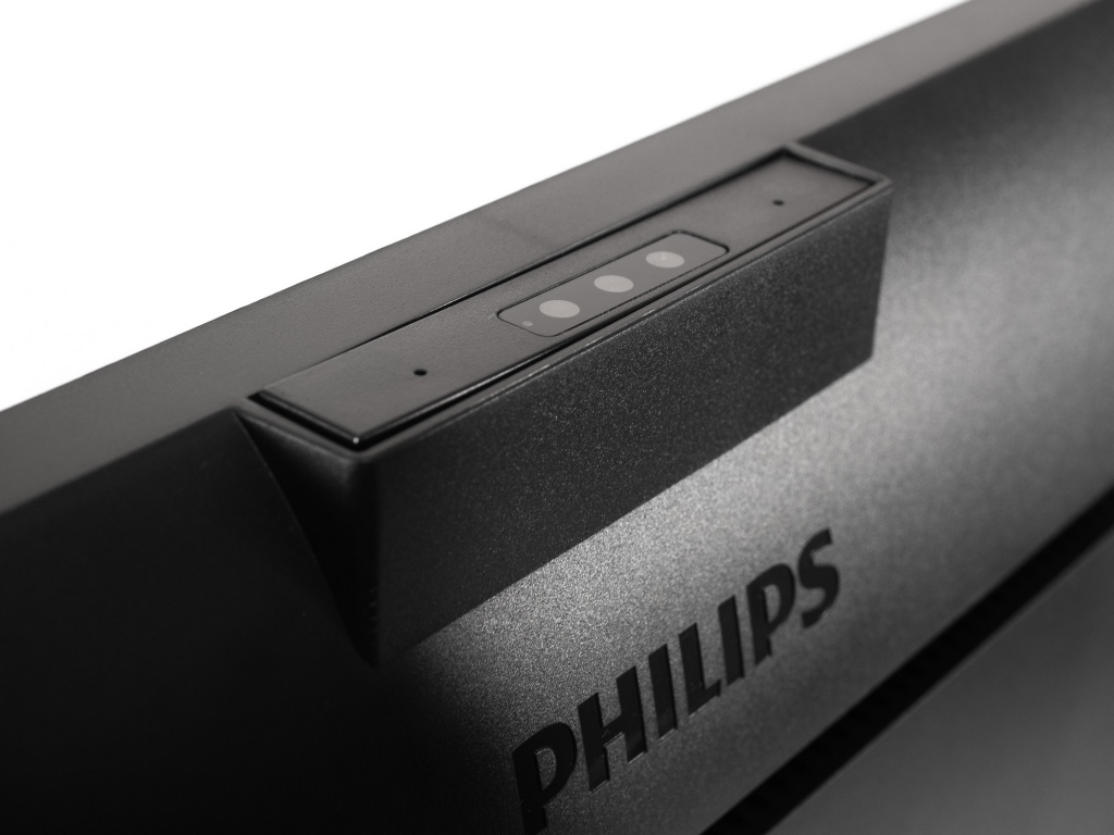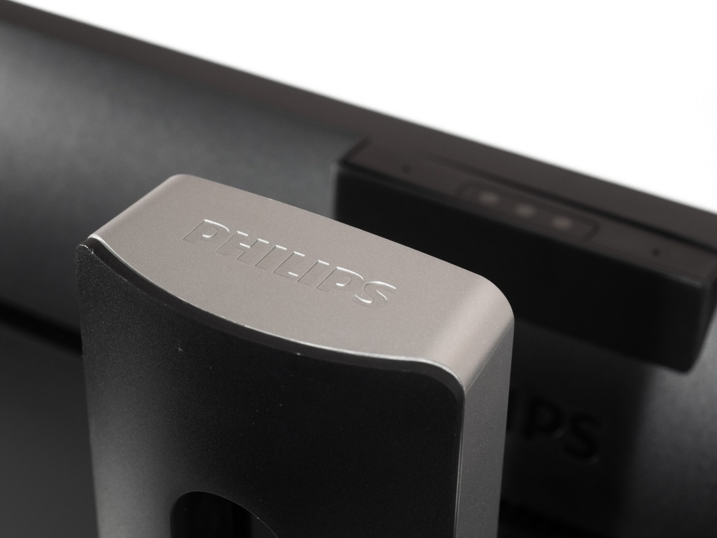 Блок с двумя датчиками у монитора особенный – откидываемый. В случае если пользователь не заинтересован в их работе (использует фиксированную яркость и не заботится о снижении счетов за электроэнергию), то блок датчиков легким движением руки убирается за заднюю часть корпуса. Вместе с ним исчезает логотип Philips, а монитор становится большим чёрным прямоугольником без выпирающих элементов.