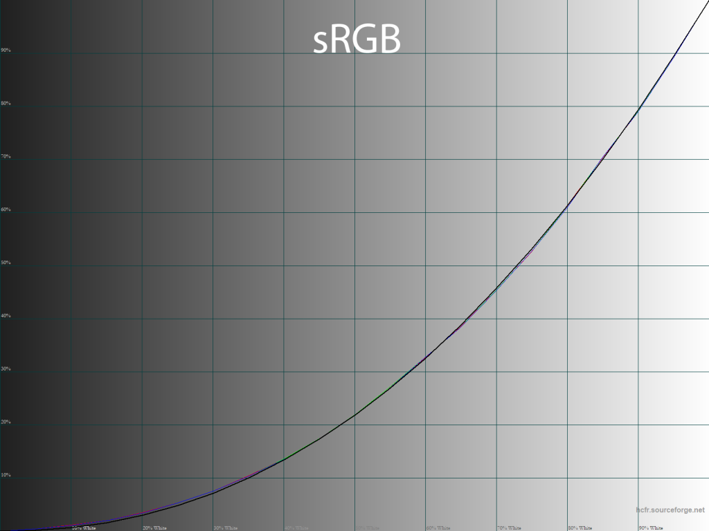 Благодаря качественной заводской настройке изменения в LUT-видеокарты в ходе проведённой калибровки оказались минимальными. Это позволило обойтись без сильных потерь: появилось лишь два более заметных перехода с небольшими паразитными оттенками.
