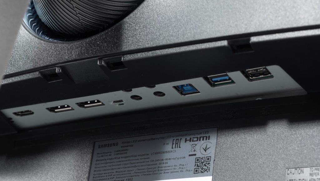 В задней части монитора расположились все интерфейсы для подключения, ориентированные вниз. Однако, подключать кабели благодаря возможности переворота корпуса в портретную ориентацию не составляет никакого труда.